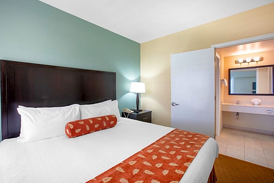 After settling in on Canada Avenue, a free outdoor pool with a shallow end invites a quick dip or a lazy sun-soaked afternoon, open year-round. The pool area pairs with a sun deck and complimentary beach umbrellas and chairs, perfect for relaxing between swims. An elevator provides easy access to the upper floors, and a picnic area invites laid-back meals in the open air.